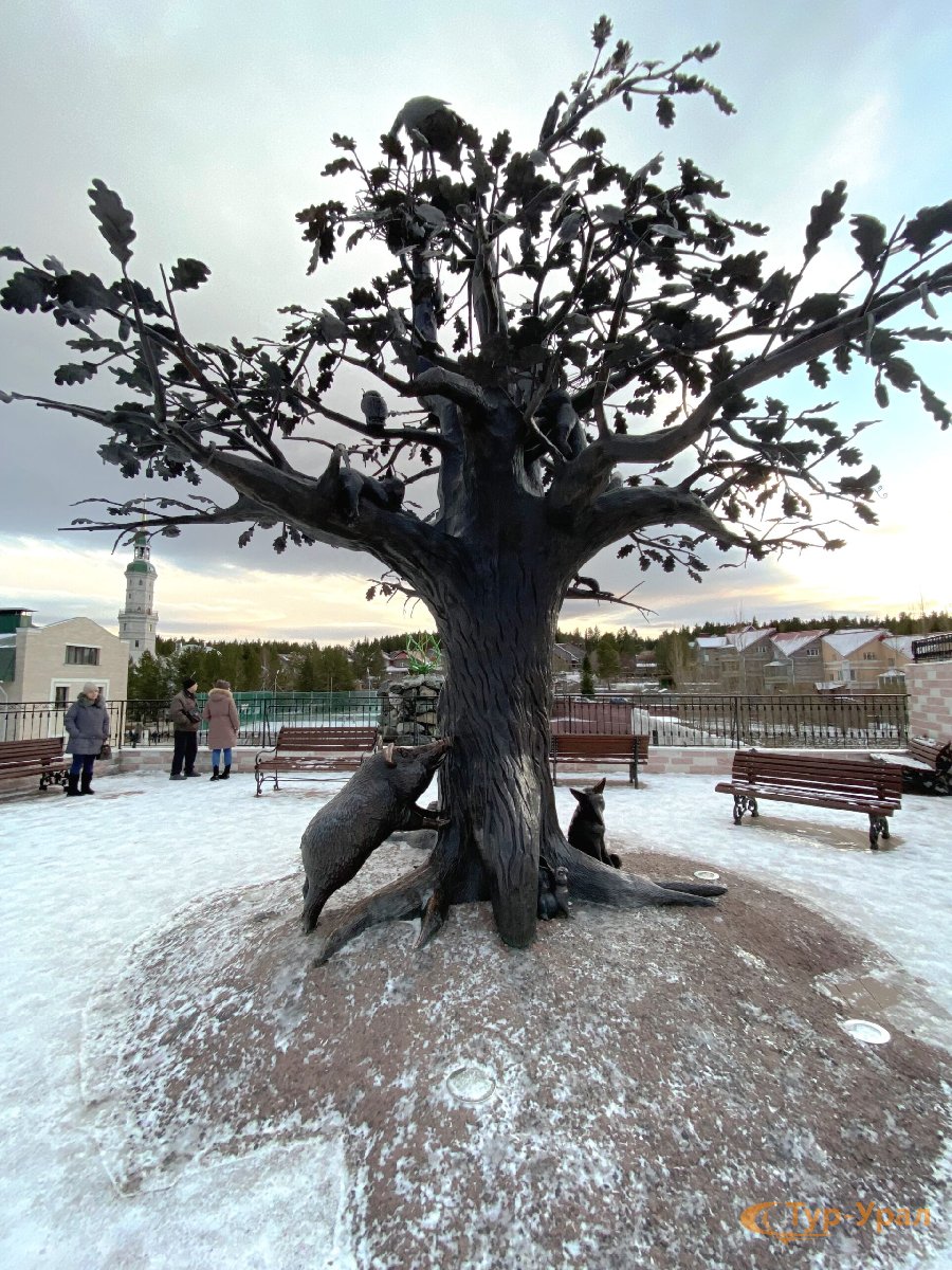 Посещение культурного комплекса на «Красной горке», где находится памятник покровителю города – Иоанну Златоусту, башня - колокольня и часовня Святителя Иоанна Златоуста. Экскурсия включает прогулку по Горному парку им. П. П. Бажова, в котором находятся скульптуры из сказов Павла Петровича – Серебряное Копытце, Хозяйка Медной горы, Огневушка-поскакушка и другие скульптуры.