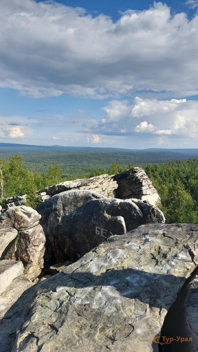 Отсюда, с вершины горы, открываются захватывающие дух виды на уральские просторы.