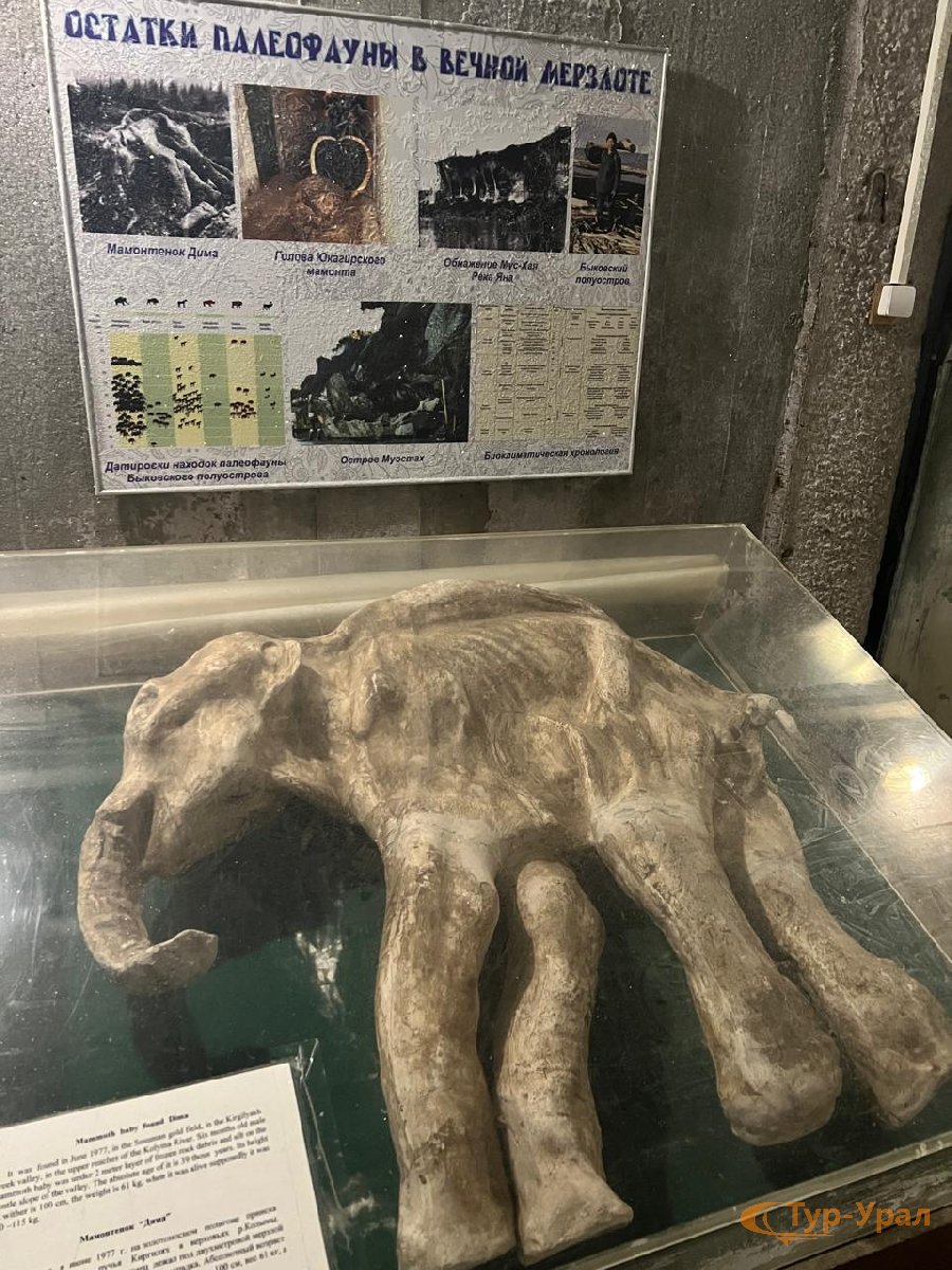В экспозиции представлены отделы археологии, этнографии и природы в том числе чучела животного мира Якутии, скелеты Тирехтяхского мамонта и гренландского кита и много другое.