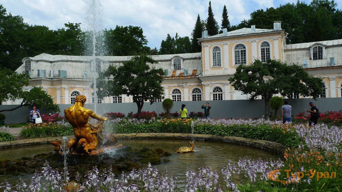 Главный герой Петергофского ансамбля – величественный Петергофский дворец, гордость и архитектурный шедевр Петергофа. За 300 лет своей истории дворец неоднократно перестраивали с учетом меняющихся вкусов монахов. Каждая эпоха и стиль нашли свое отражение в облике этого уникального памятника. А в период второй мировой войны он был полностью разрушен и заминирован - уцелели только внешние стены и некоторые перекрытия. Из более 4000 экспонатов удалось спасти только половину – все остальное было уничтожено и разграблено. 20 лет длилось восстановление дворца: он в буквальном смысле восстал из пепла и пыли, благодаря колоссальному труду, мастерству и таланту архитекторов и реставраторов. На сегодняшний день Петергофский дворец представляет собой неповторимый и бесценный историко-художественный музей, в котором представлено около трех с половиной тысяч уникальных экспонатов. Среди коллекции музея вы можете увидеть редчайшие образцы сохранившейся живописи, фарфора, ткани и мебели. Необычайно интересными, конечно, являются личные вещи императора и его семьи: зубная щетка и зубной порошок, часы, портсигар, перстень, румяна, музыкальная шкатулка и много другое. С террасы Дворца открывается изумительно красивый вид на Финский залив и Большой каскад – одно из самых грандиозных фонтанных сооружений в мире.